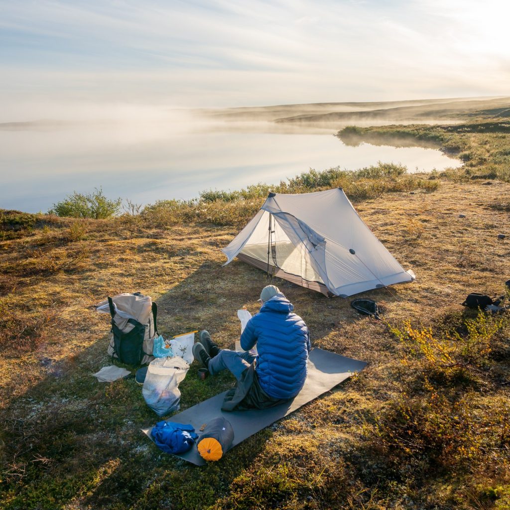 Seuraavana aamuna keitimme kahvia ja maistoimme varovaisesti graavikalaa. Se osoittautui erinomaiseksi, ja söimme leivän päällä molemmat graavatut fileet. Olimme heränneet tiheään sumuun, joka hälveni auringonpaisteeksi hitaasti aamupalan aikana. Pakkasimme sumusta läpimäräksi kastuneen teltan ja jatkoimme syvemmälle erämaahan kohti Rostojokea.