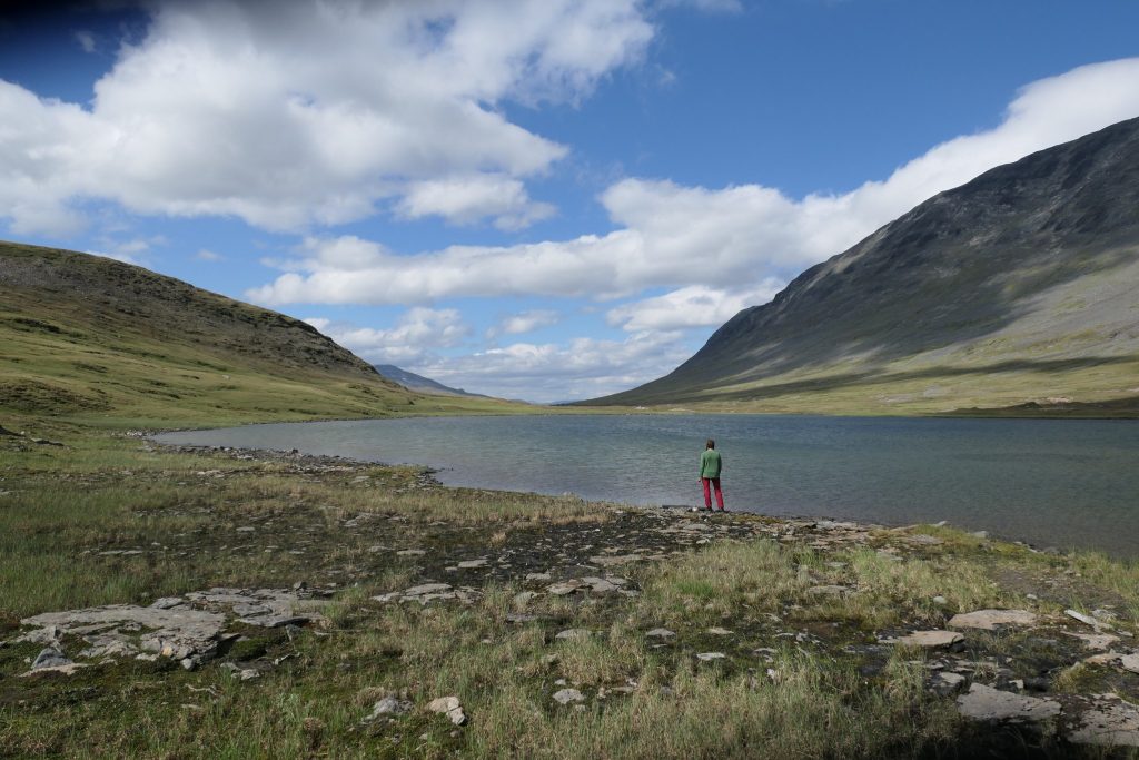 Saavuimme Sarekin kansallispuiston alueelle kahden joen haarukkaan – Sjnjuvtjudisjåhkå oli siltin maidonvaaleaksi värjäämää, kun taas taukopaikaksi valikoitunut Sjpietjavjåhkå oli upean kirkasvetinen. Molempien jokien yli pääsee rippusiltaa pitkin. Nautinnollisen tauon jälkeen lähdimme seuraamaan Sjnjuvtjudisjåhkåa avoimilla tunturinummilla. Merkitty Padjelantaleden jäi taaksemme ja seuraavan kerran sukelsimme tunturikoivikoihin vasta vaelluksen loppupuolella kuuluisassa Rapajoen laaksossa. Sarekin, Padjelantan ja Stora Sjöfalletin kolme kansallispuistoa muodostavat läntisen Euroopan laajimman erämaan, Laponian maailmanperintökohteen, jossa riittää kulkemista vielä monille seuraaville vaelluksille. Laponiaan kuuluu myös erillään oleva metsien ja soiden mosaiikista muodostuva Mudduksen kansallispuisto lähellä Jällivaaraa.